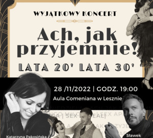 Zapraszamy Państwa w muzyczną podróż w do lat 20-tych i 30-tych. Tego wieczoru powrócą wspomnienia dawnych, wspaniałych lat!