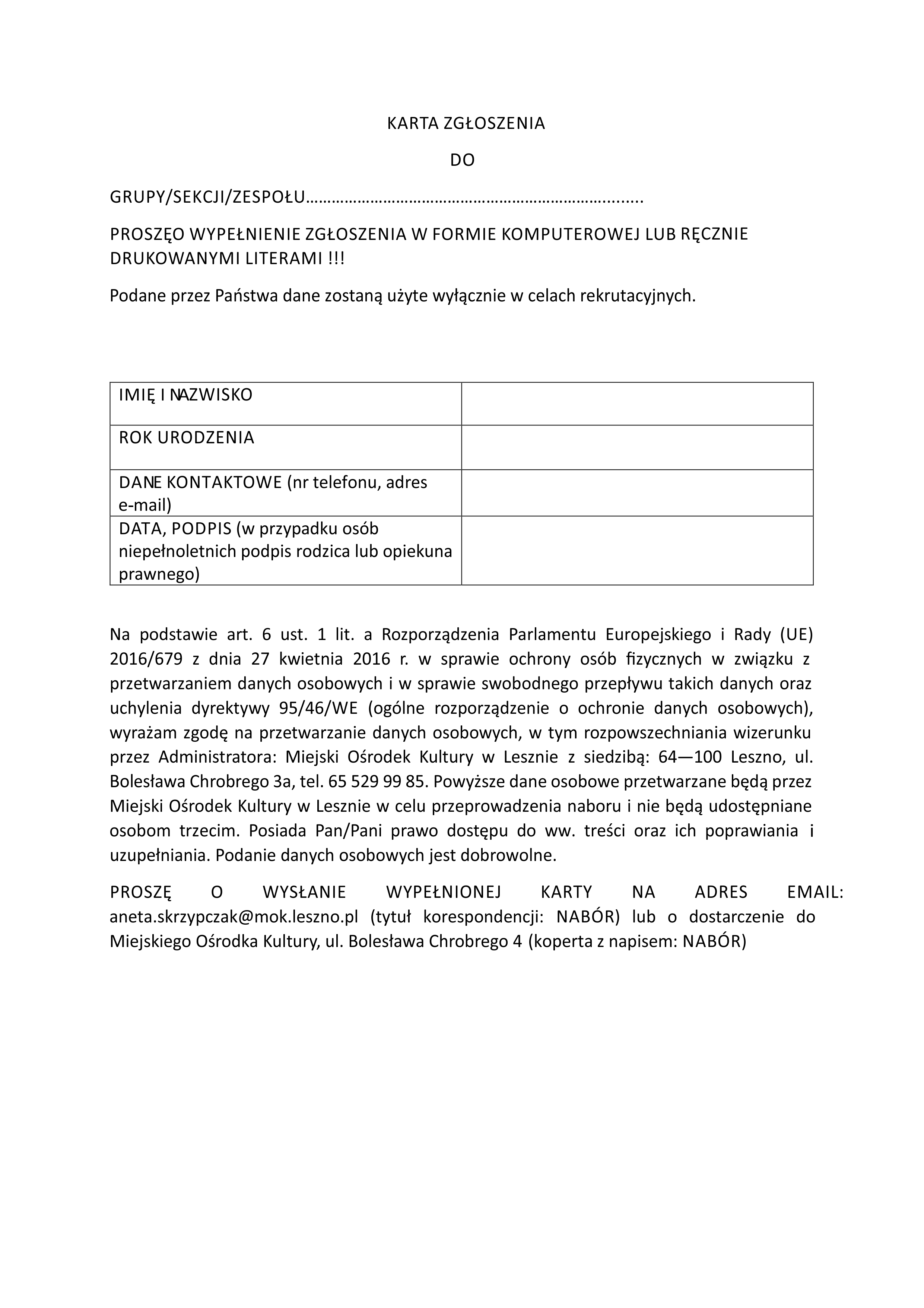 Karty zgłoszeniowe do pobrania pod artykułem.