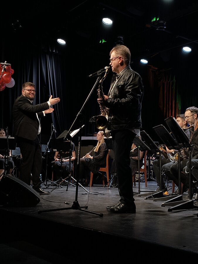 To z pewnością był wyjątkowy koncert. A właściwie dwa koncerty, gdyż pierwszy Big Band Państwowej Szkoły Muzycznej pod batutą Marka Walenczewskiego już o godzinie 12:00 dla młodzieży z leszczyńskich szkół. W tym roku Państwowa Szkoła Muzyczna w Lesznie obchodzi jubileusz 45-lecia działalności, a koncert karnawałowy był pierwszym z serii koncertów, które będziemy mieli okazję usłyszeć w sali Miejskiego Ośrodka Kultury. Podczas koncertu wystąpili również soliści, wśród których pojawili się między innymi v-ce dyrektor Leszek Marszałek oraz pani dyrektor Gabriela Kistowska.