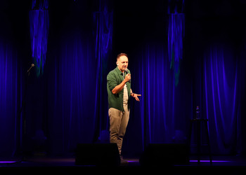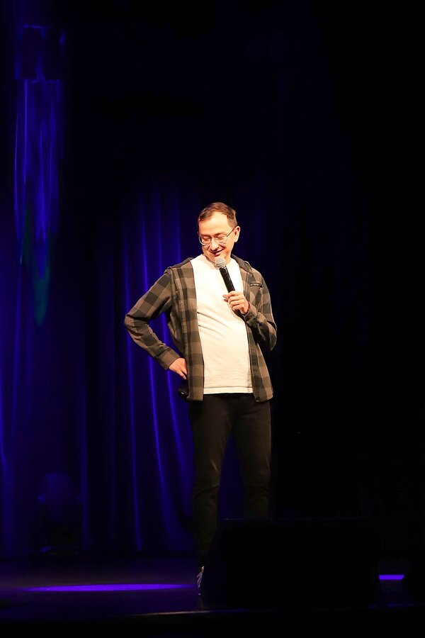 Michał Leja jest kolejnym komikiem, który zapełnił naszą salę, która co chwilę wybuchała salwami śmiechu.